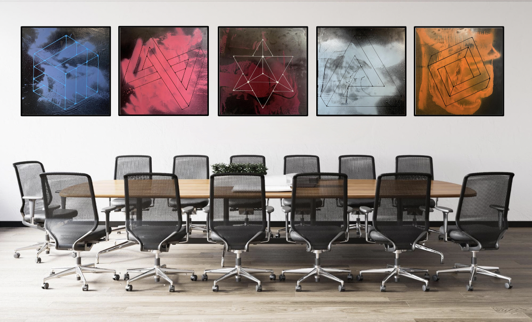 Set of Five from the Winter Schizophrenics Series - Mixed media on Canvas | 30 x 30" each - Installation mock-up
