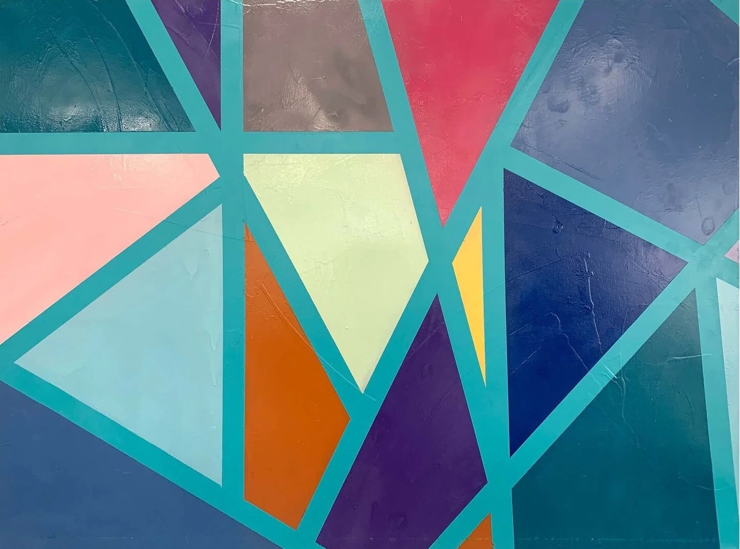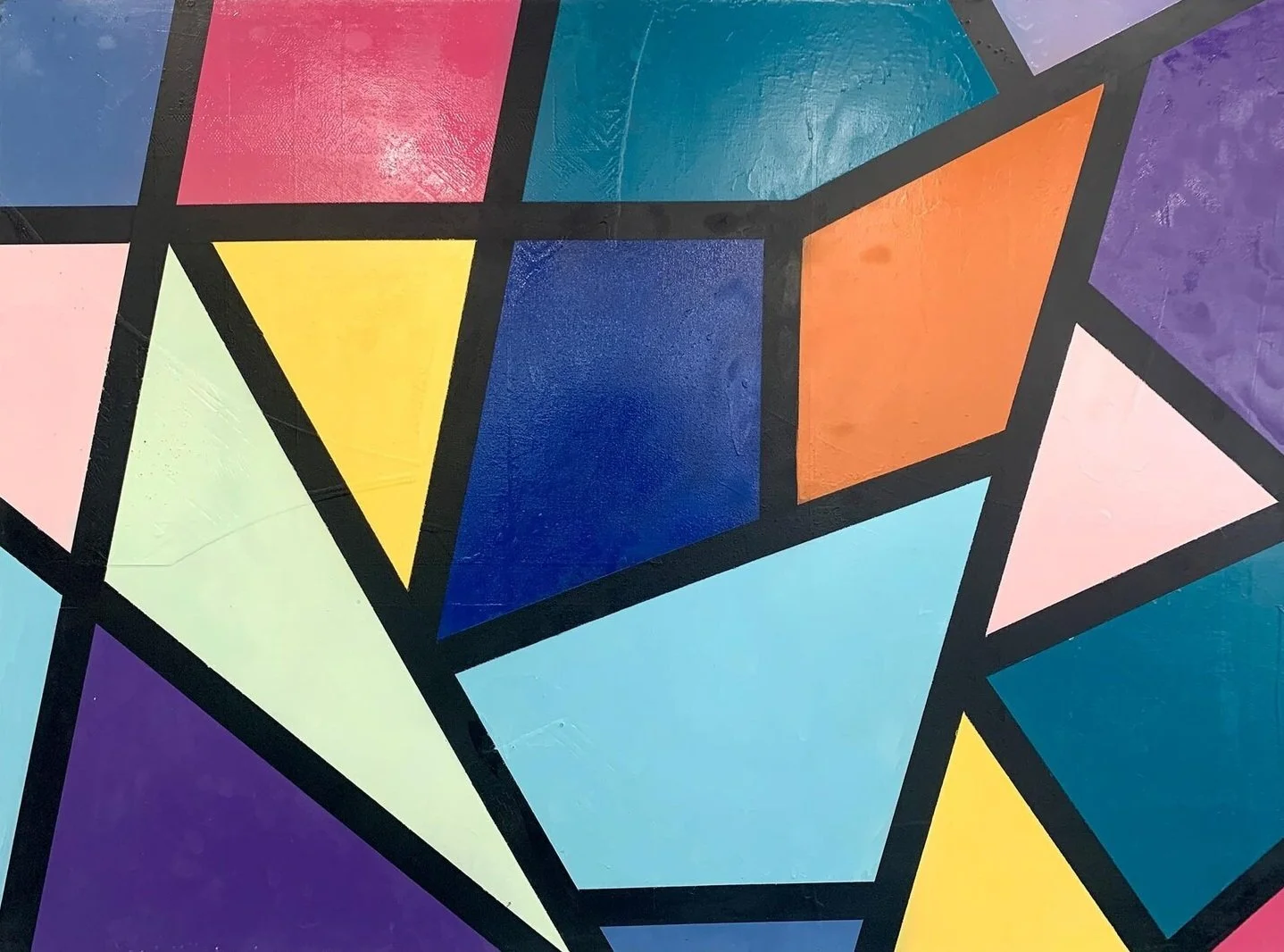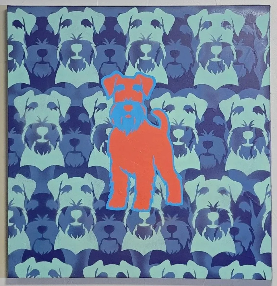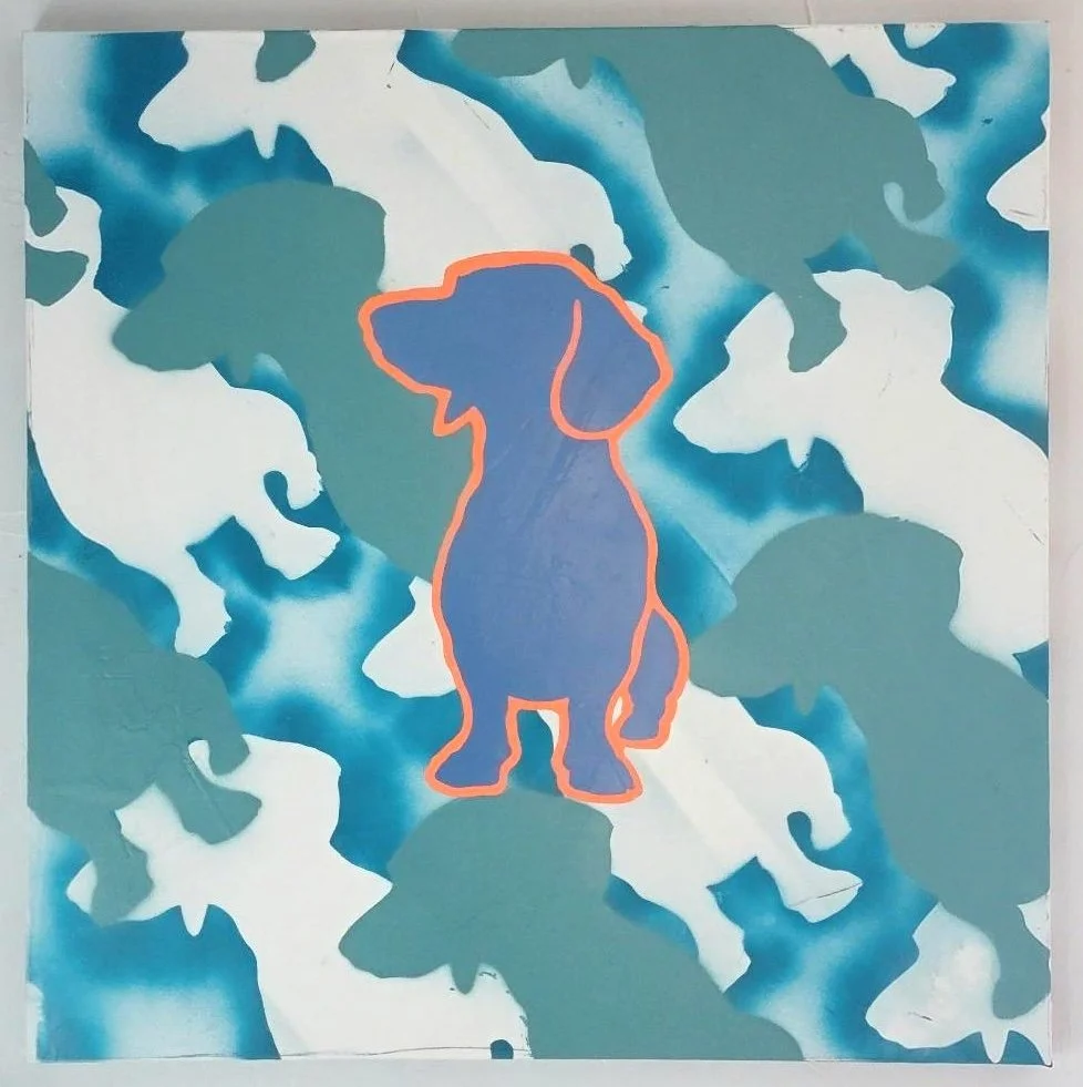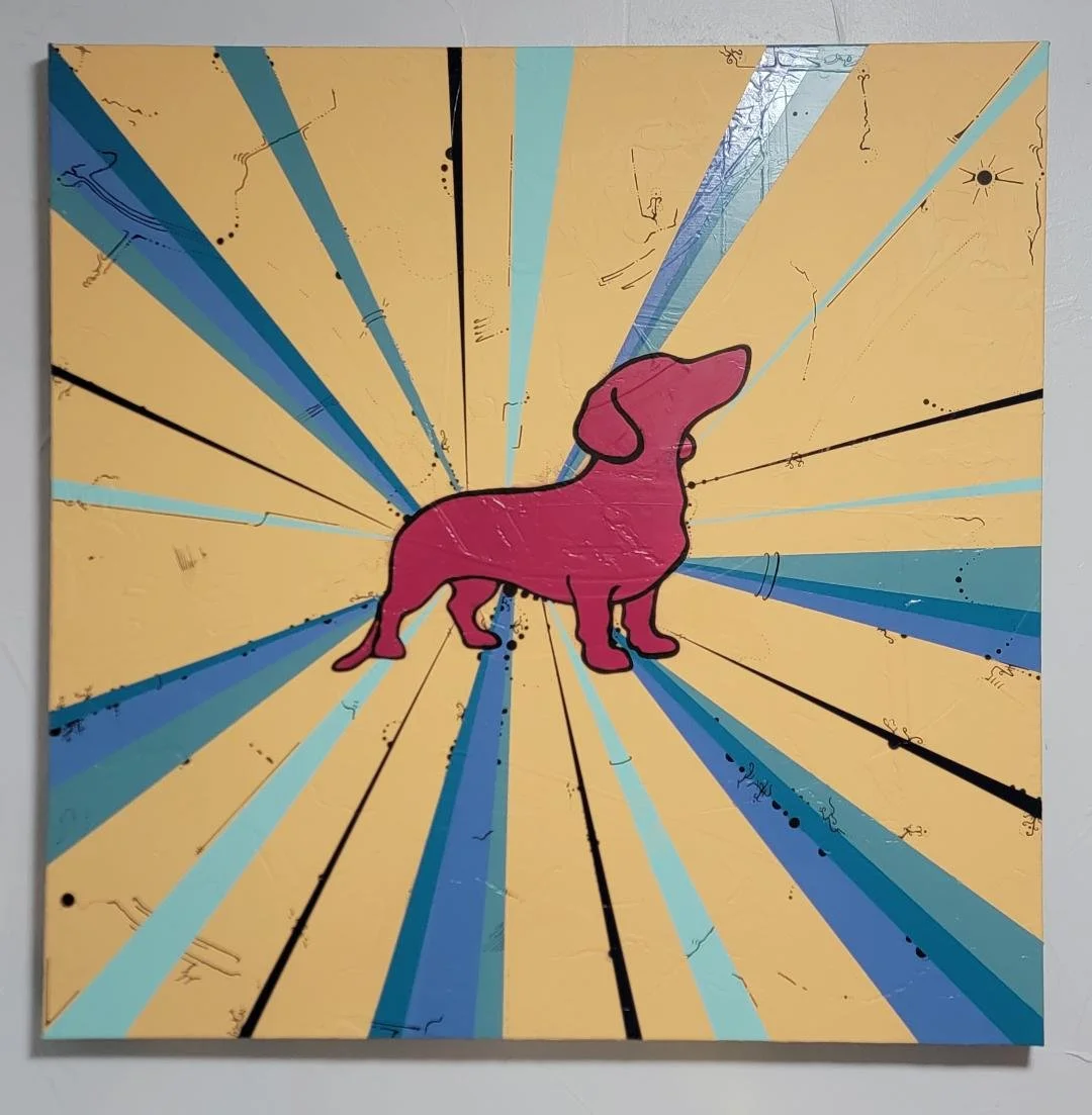 Acrylic, spray paint, spackle, recycled popcorn ceiling texture, house paint, spray concrete texture on canvas, 36 x 36”